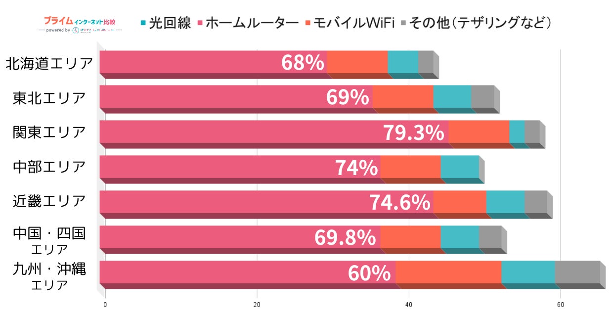 実際、プライムストラテジー編集部が行ったアンケートでも、各エリア7割近くが光回線ユーザーでした。