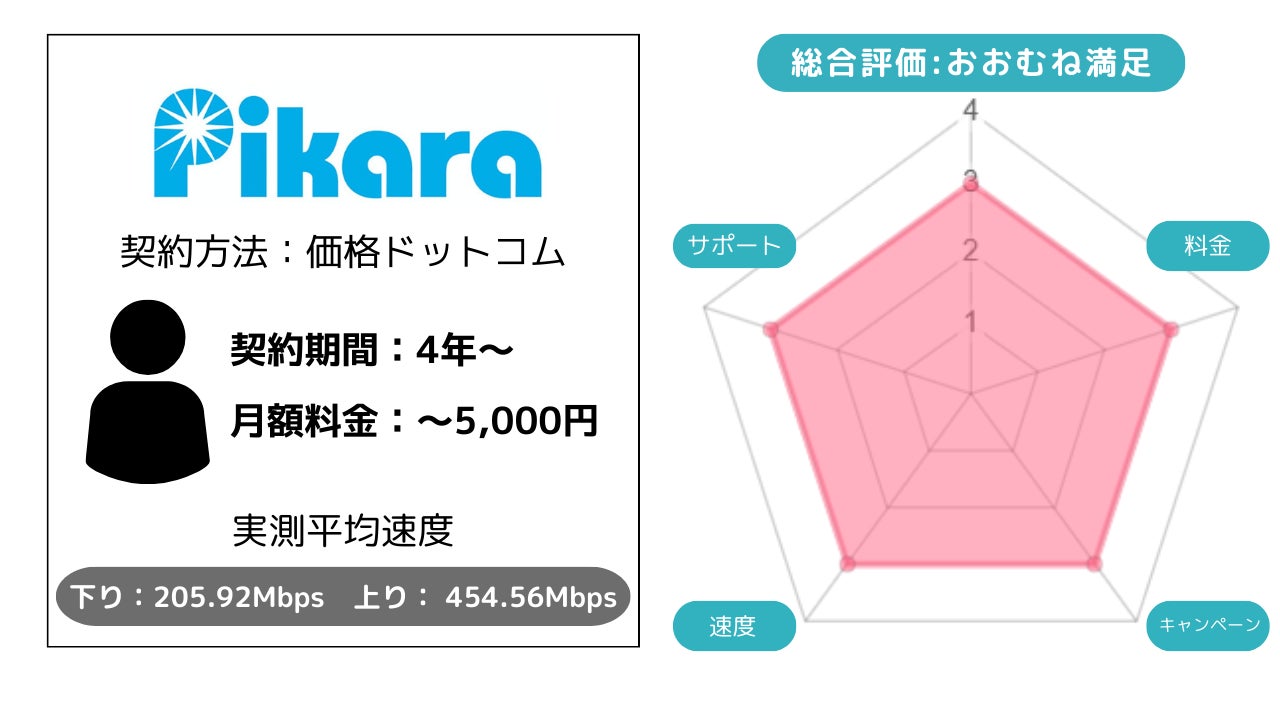 こちらのユーザーは、4年以上ピカラ光を利用しているようですが、月額料金は~5,000円と平均よりも安いことが魅力的です。
