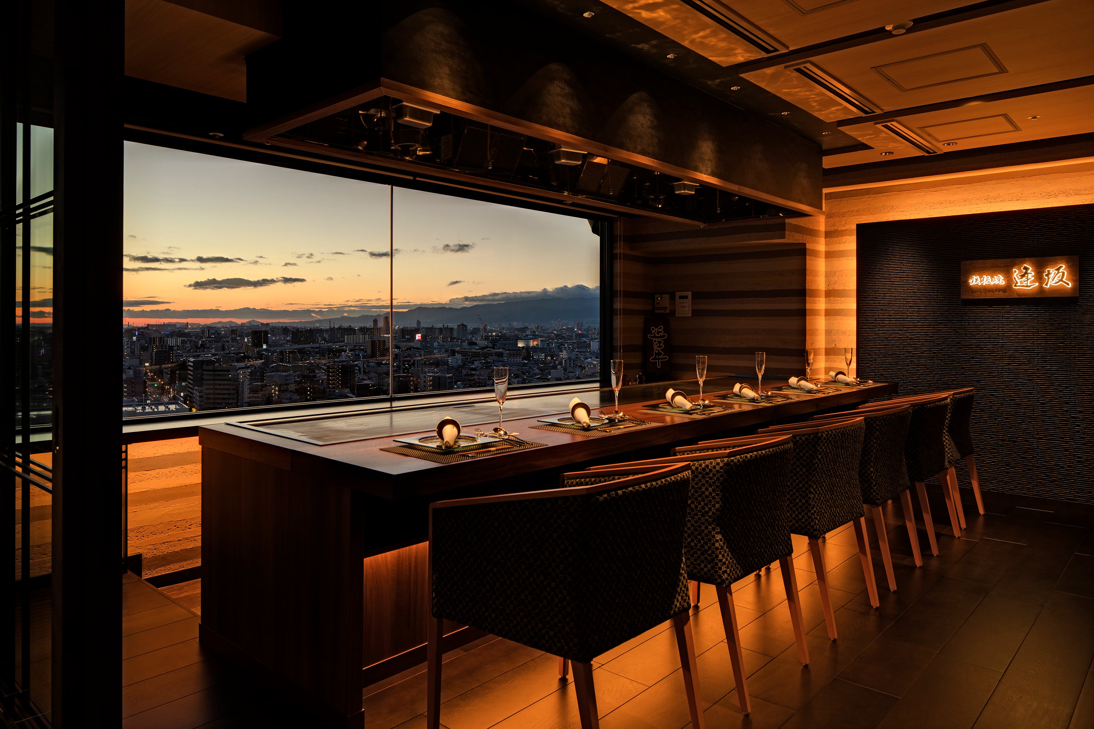 プロジェクトに先駆けて、ホテル外観とホテル最上階のフラッグシップレストラン(鉄板焼「逢坂」)を再現。