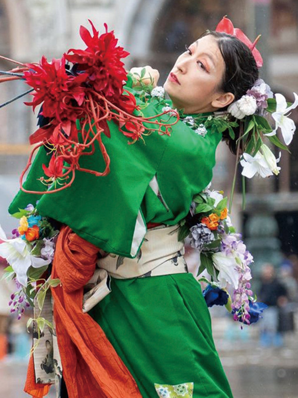 和洋楽器とパフォーマンスのコラボ型コンサートです。亀戸に伝わる神話の世界観を、和洋楽器の音色にのせてお届けします。聴いて楽しむだけでなく、視覚的にも色鮮やかな舞台は、花を生けながら舞う唯一無二の華舞師・山本芙沙子のパフォーマンスによるもので、物語の進行とともに生け花が完成に近づいていく過程を余すことなくご覧いただけます。