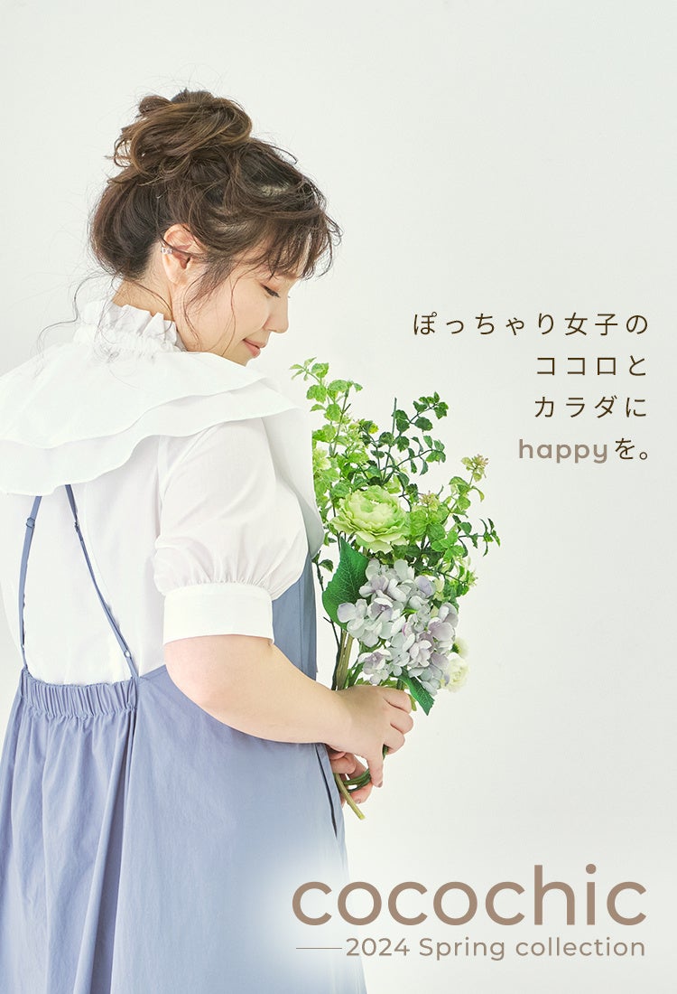 オンラインストアでは、トレンドに合わせたデザインを取り入れ、ファッションをもっと身近に感じられるように。オン/オフ問わず、多様なライフスタイルに寄り添うアイテムを6,000円~15,000円(税抜き・2024SS)の価格帯で提供します。cocochicは、ぽっちゃり女子が直面するファッションの悩みを解消し、着ることの楽しみと喜びを提供し続けていきます。