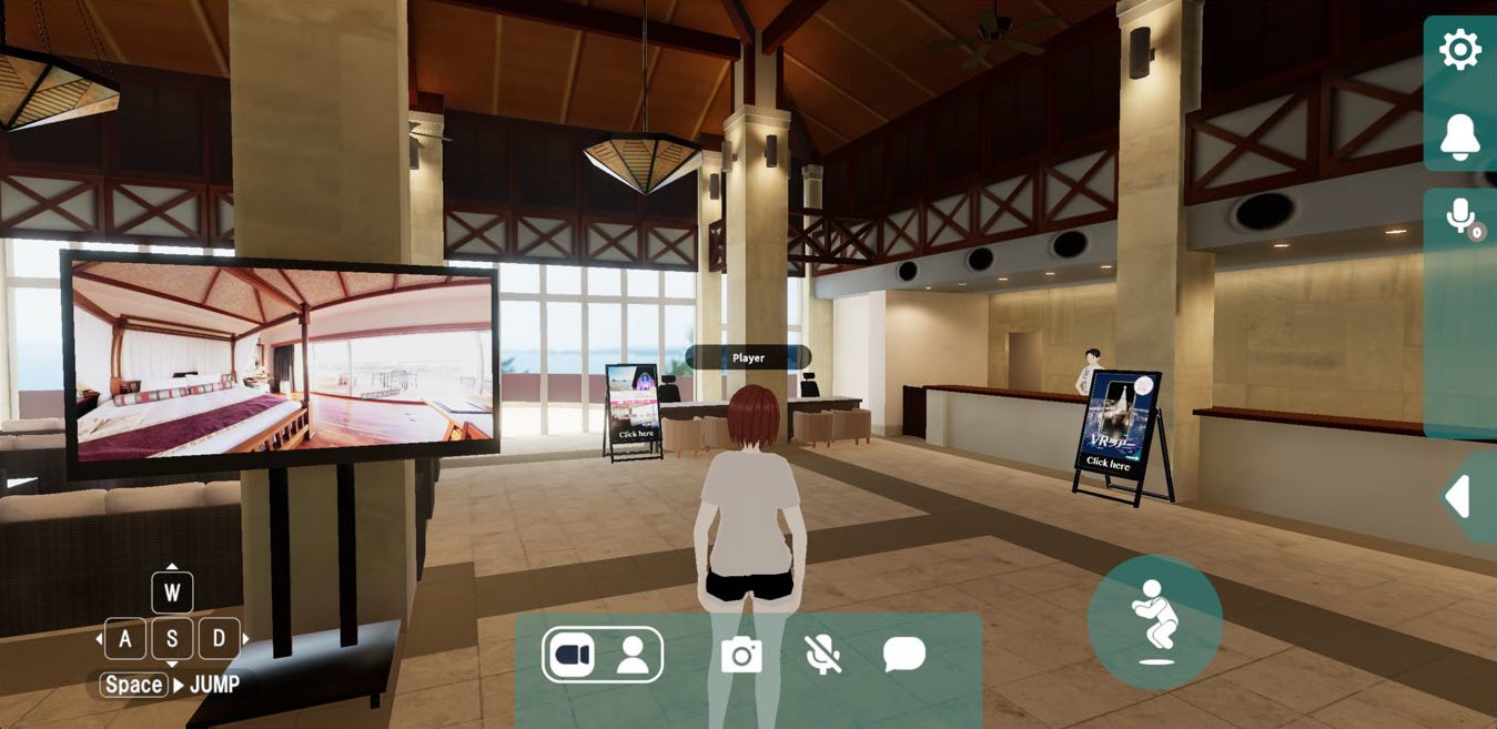 自然な光が差し込むエントランスをメタバース化し、都会の喧騒を離れリゾートの雰囲気を味わえます。