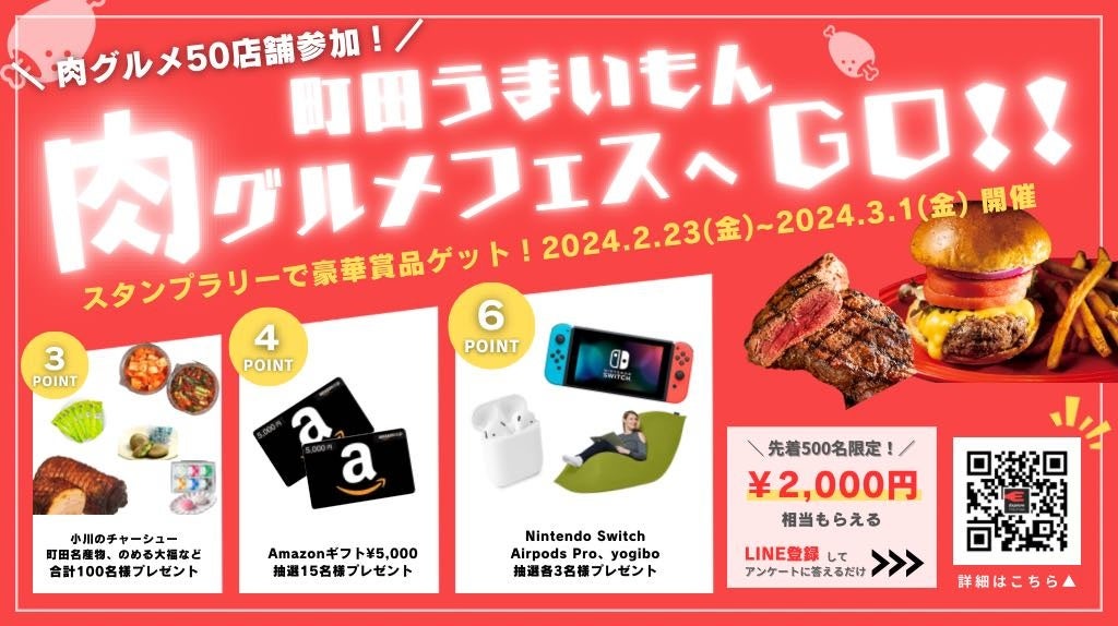 町田の肉グルメを食べ巡って、豪華賞品に応募しよう |