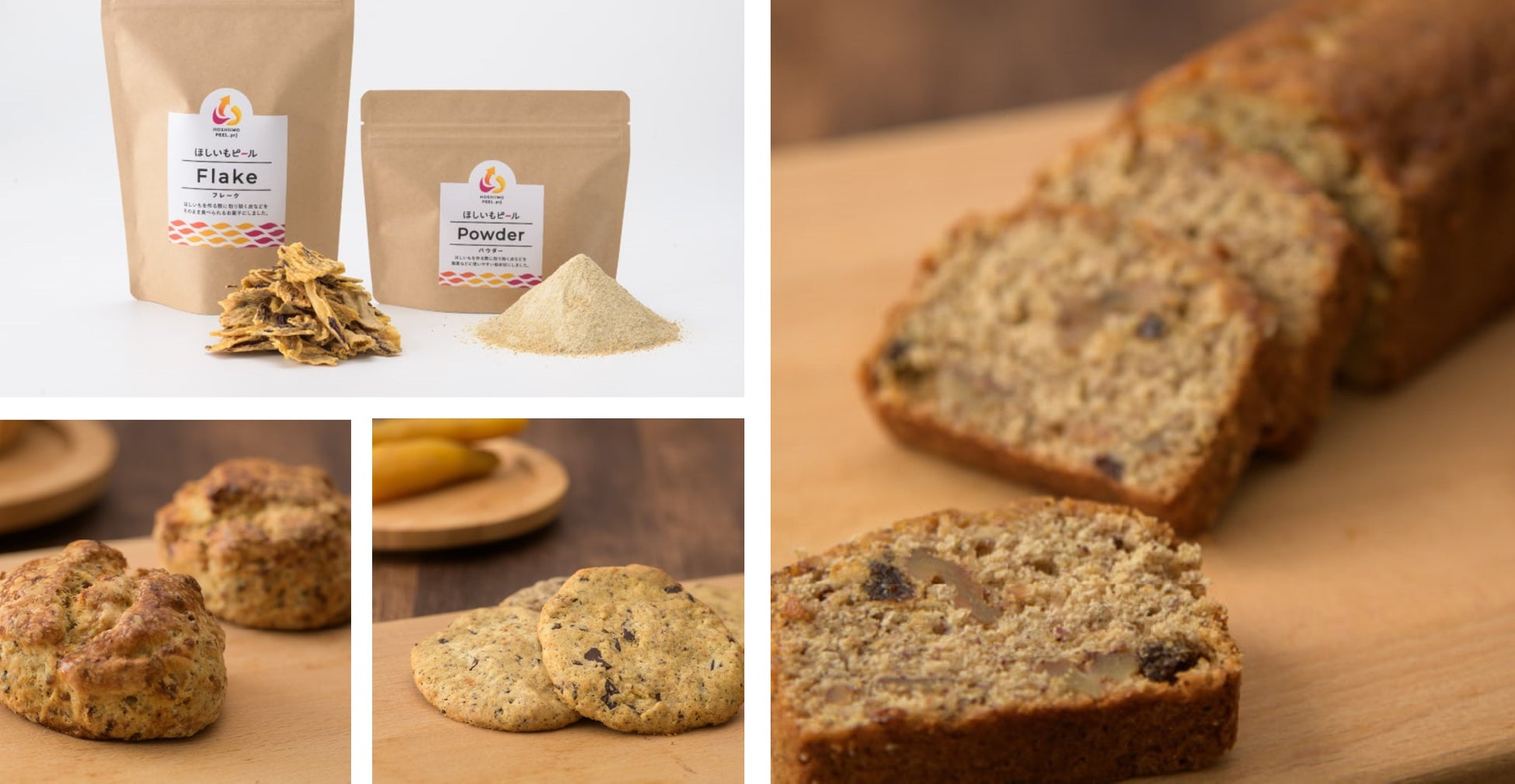 常温で糖度50度相当の⽢さ!フレークやパウダーに加えて、クッキーやパウンドケーキ・スコーンも商品化。初年度はさつまいも 4,000本相当の消費へ