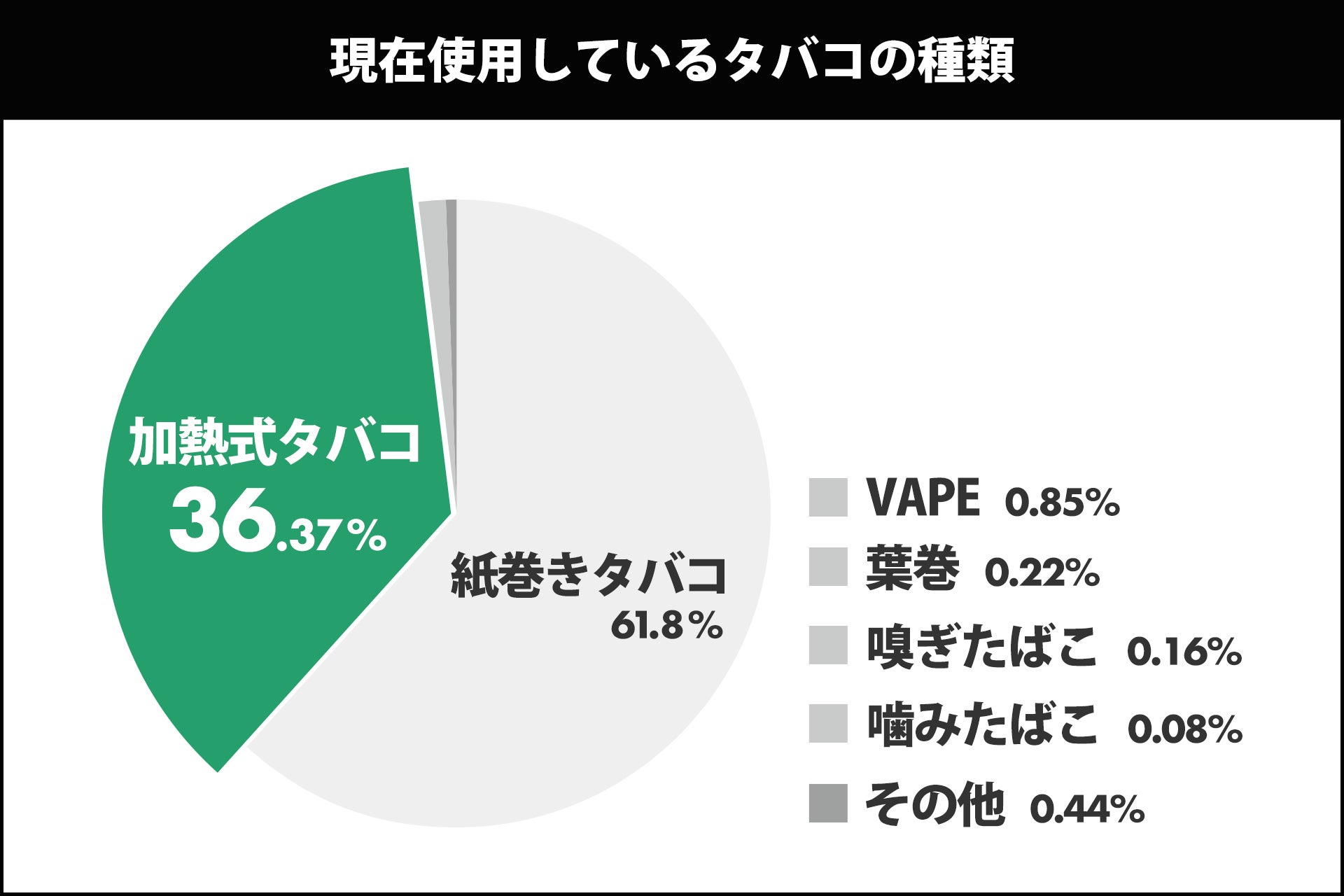 結果、喫煙者の中での加熱式タバコ利用シェア率は、36.37%という結果になりました。