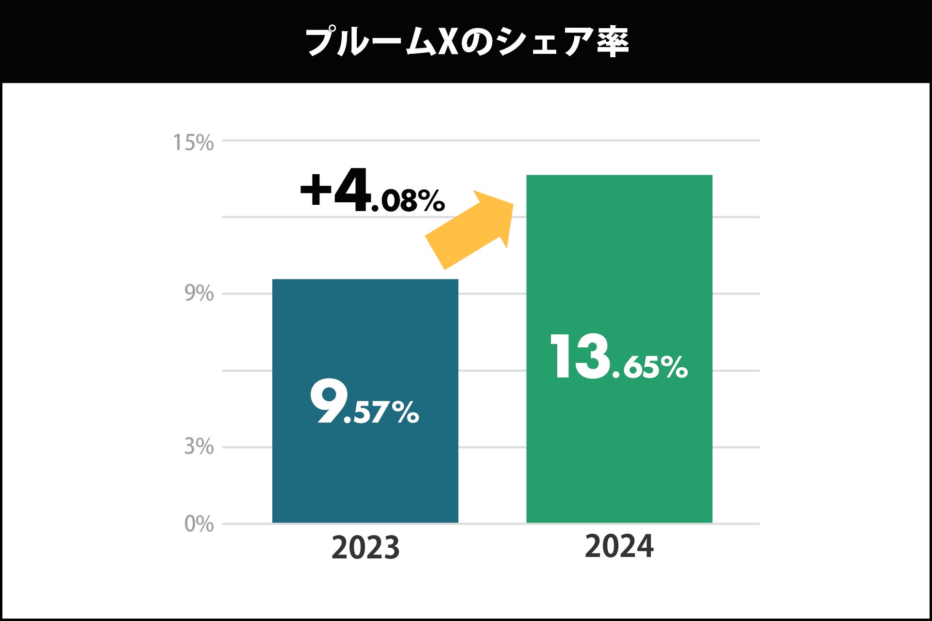 日本たばこ産業(JT)が発売するプルームXシリーズも13.65%と、昨年度の調査結果と比べるとシェア率を4%伸ばす結果となりました。