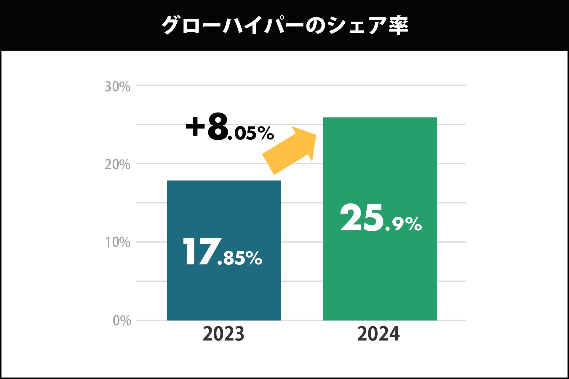 ◾️グローハイパーはシェア伸長。昨年から約8%増