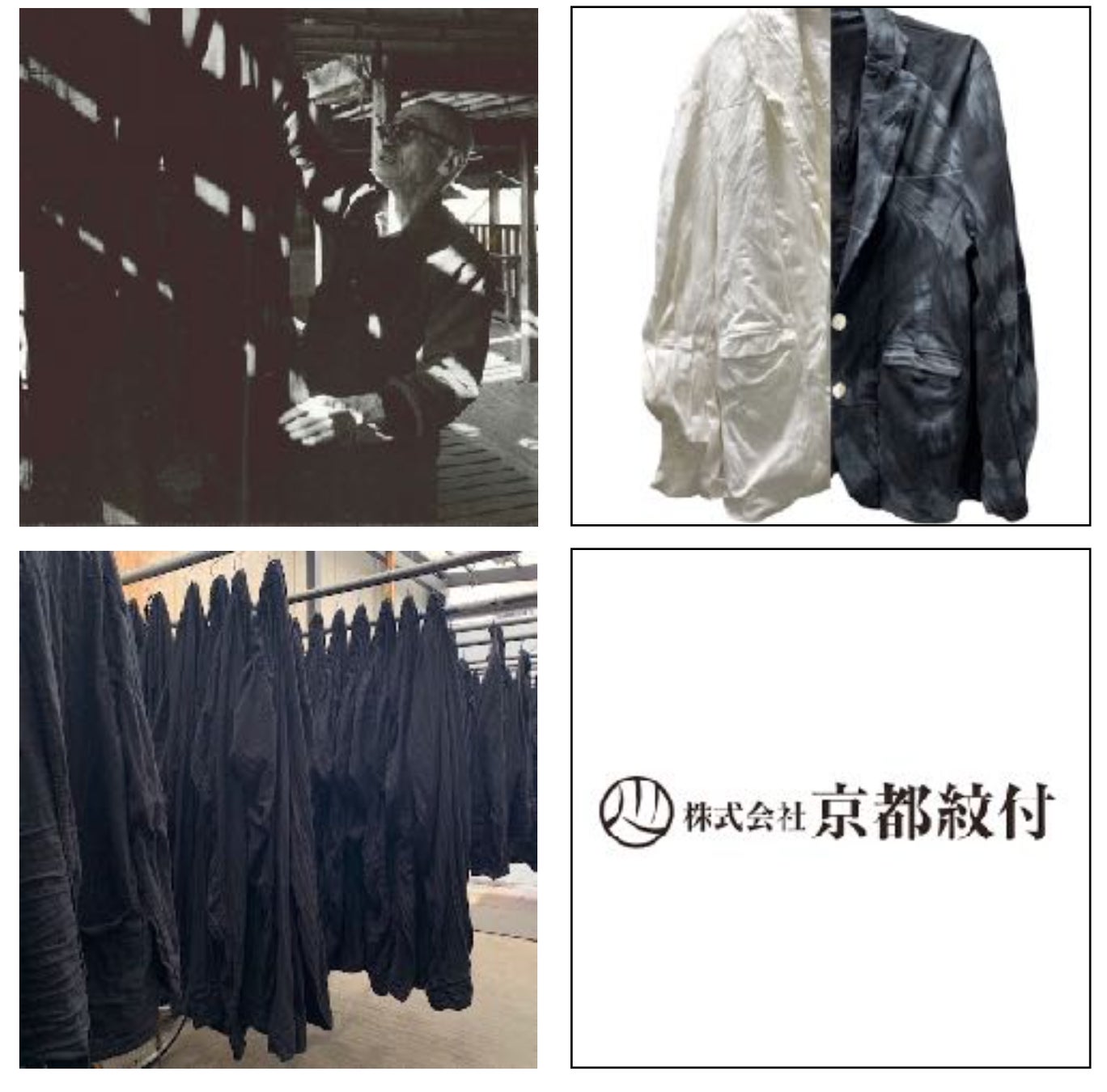 1915年に創業した京都紋付は、着物(黒紋付)の黒色に特化して染色している会社である。着物マーケットの縮小に伴い厳しい状況に立たされているが、黒紋付は歌舞伎や伝統芸能において必要な衣装であり、その技術を継承し、新しいプロダクトとして提案している。アパレルブランドへの提案や古着のアップサイクルなど、黒染技術の可能性を広げている。