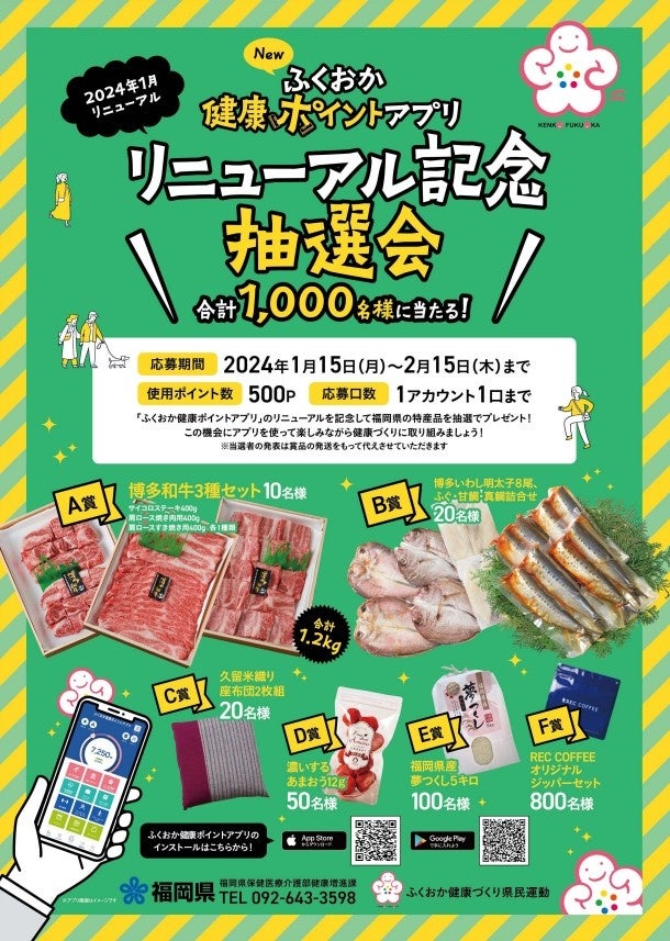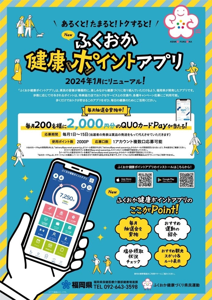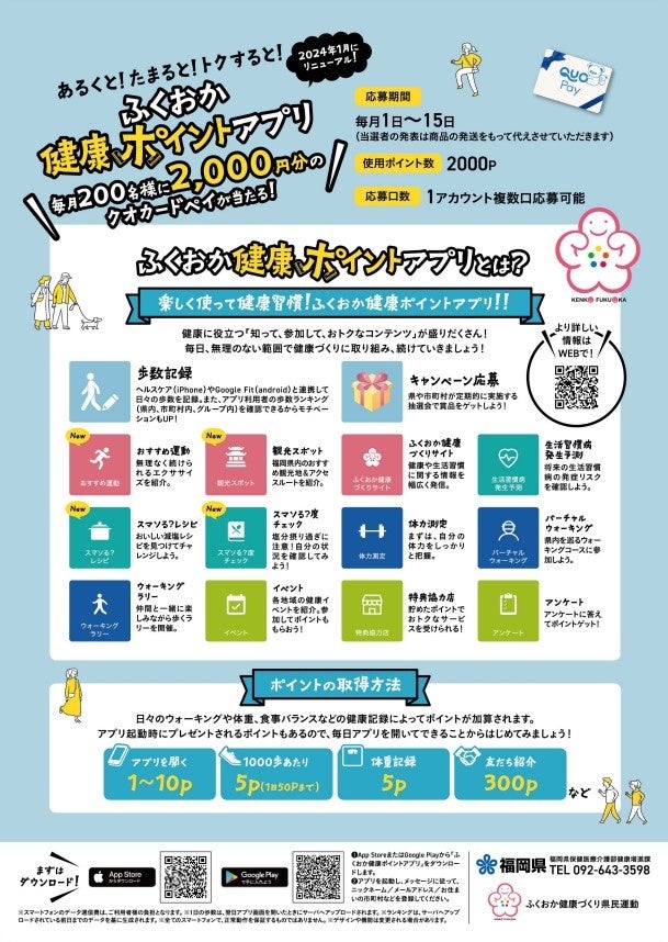【福岡県】参加しないともったいない!福岡県公式健康アプリ「ふくおか健康ポイントアプリ」リニューアル記念抽選会を開催!