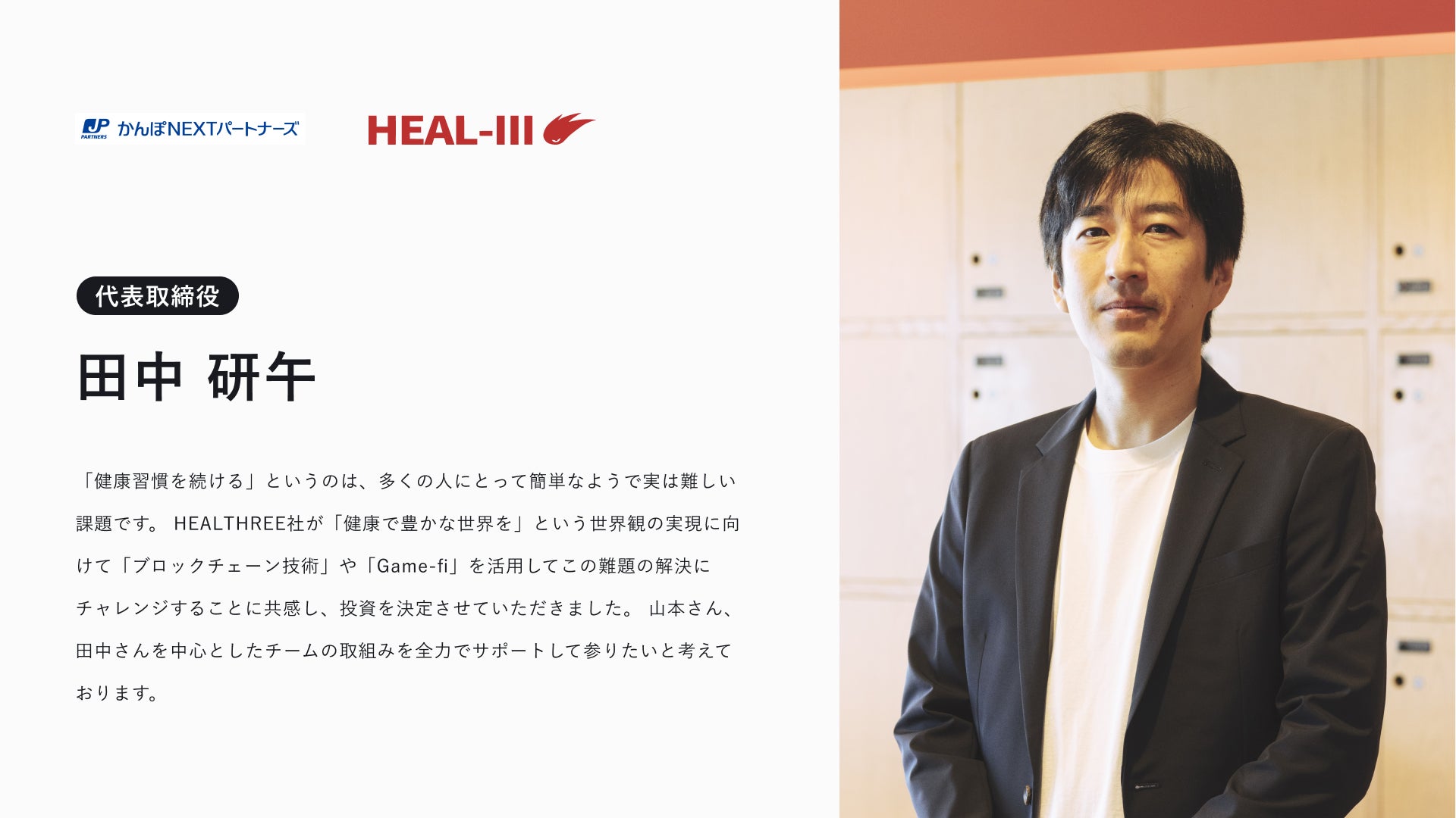 Astar Network上のweb3ヘルスケアアプリ「HEALTHREE(ヘルスリー)」を運営する、株式会社HEALTHREE(本社:東京都渋谷区、CEO:山本 真也、以下「当社」)は、東京ウェルネスインパクトファンド、W fund、三井住友海上キャピタル、かんぽNEXTパートナーズから資金調達を実施したことをお知らせいたします。