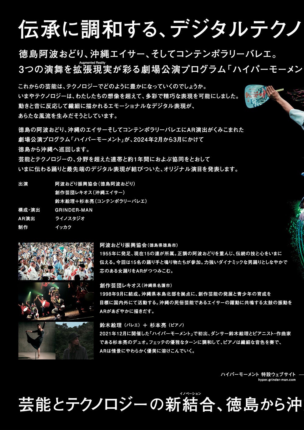 阿波おどりとXR(拡張現実)テクノロジーが融合する劇場公演プログラム「ハイパーモーメント」。あわぎんホール(徳島県郷土文化会館)にて2月11日(日・祝)開催
