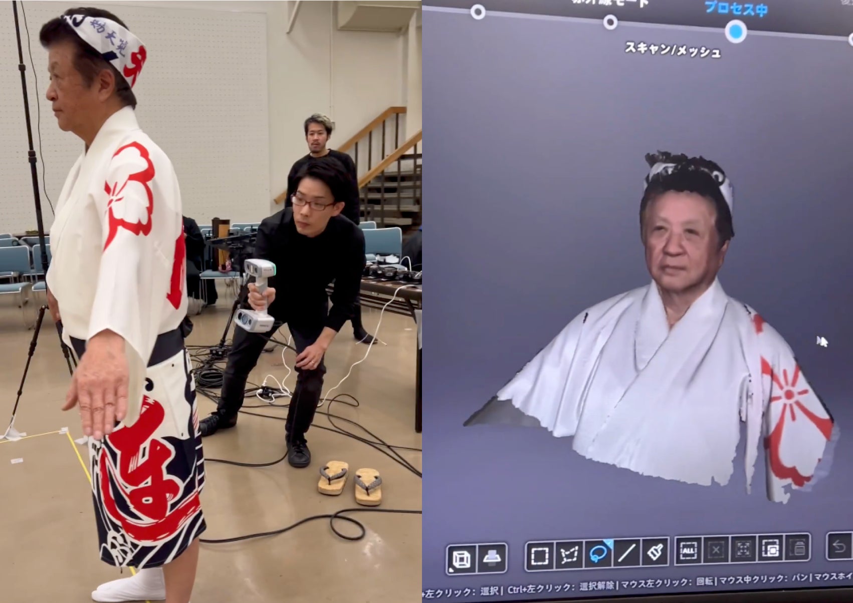 (右画像)3Dスキャンされる天水連 山田実氏(Instagramより)