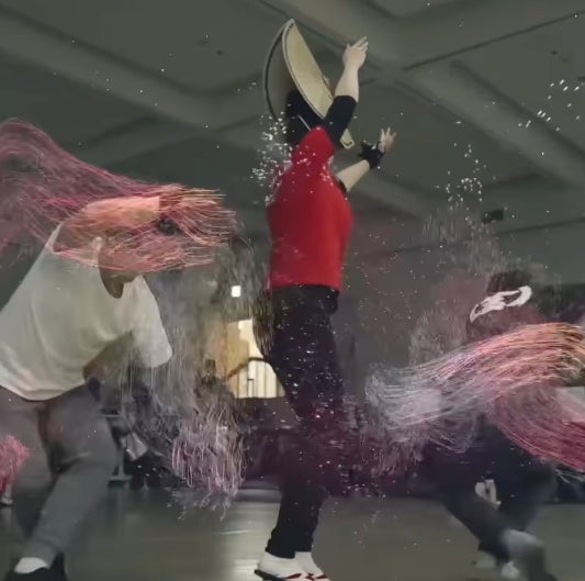 本作では、オリジナルで開発されたAR演出システムが、阿波おどりの踊り子や鳴り物の生演奏に反応して、表情豊かなデジタルエフェクト(CG)をリアルタイムで生成します。