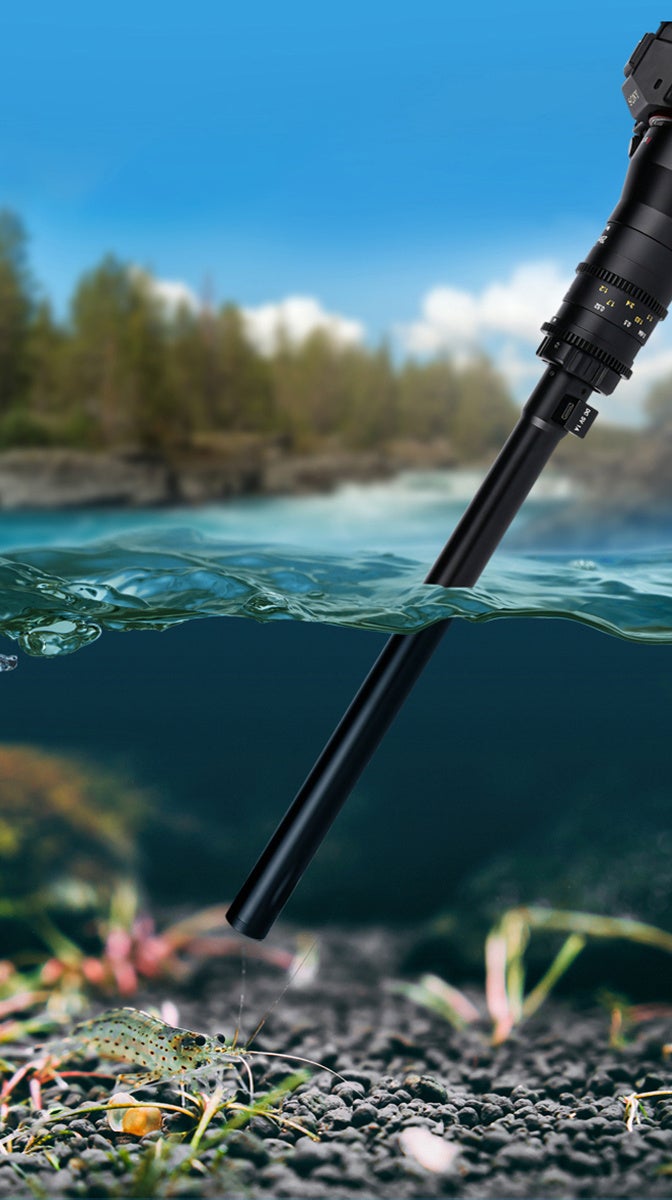 レンズ本体はメインユニットとペリスコープの2分割構造を採用し、Φ29mm×460mmとΦ23mm × 452mmの2種類の細長い鏡筒が難しいアングルからの撮影も可能にします。絞りリングとフォーカスリングはレンズギアを採用し、動画撮影時にフォローフォーカスを容易にします。