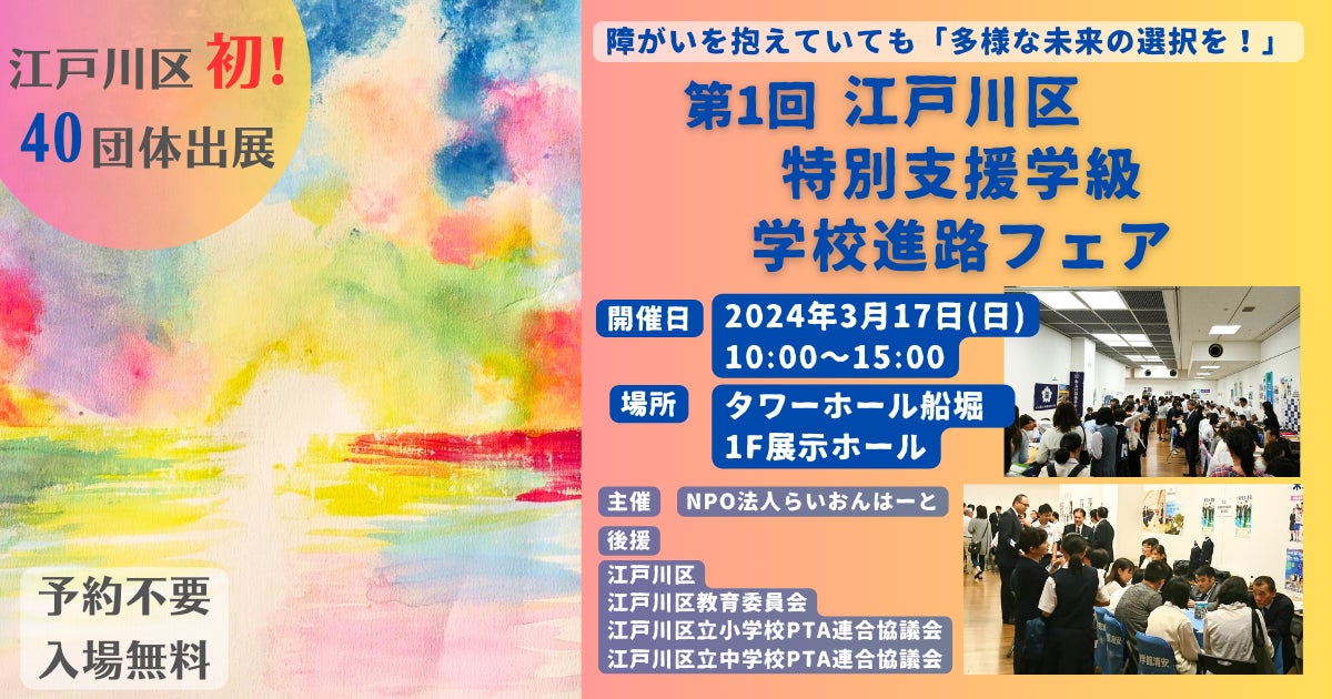 この度、かねてからの思いである第1回江戸川区特別支援学級・学校 進路フェアを開催するにあたり、