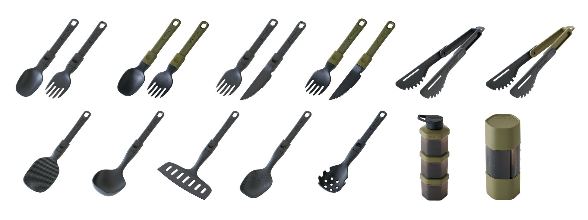 ポケットスプーン&フォーク/ポケットスプーン&フォークKA/ポケットフォーク&ナイフ/ポケットフォーク&ナイフKA…各¥880 / ポケットトング/ポケットトングKA…¥748 / ポケットしゃもじ/ポケットレードル/ポケットターナー/ポケットクッキングスプーン…各¥880 / ポケット麺サーバー…¥980 / BBQスパイスコンテナ…¥2,080 / BBQソースボトル…¥2,280