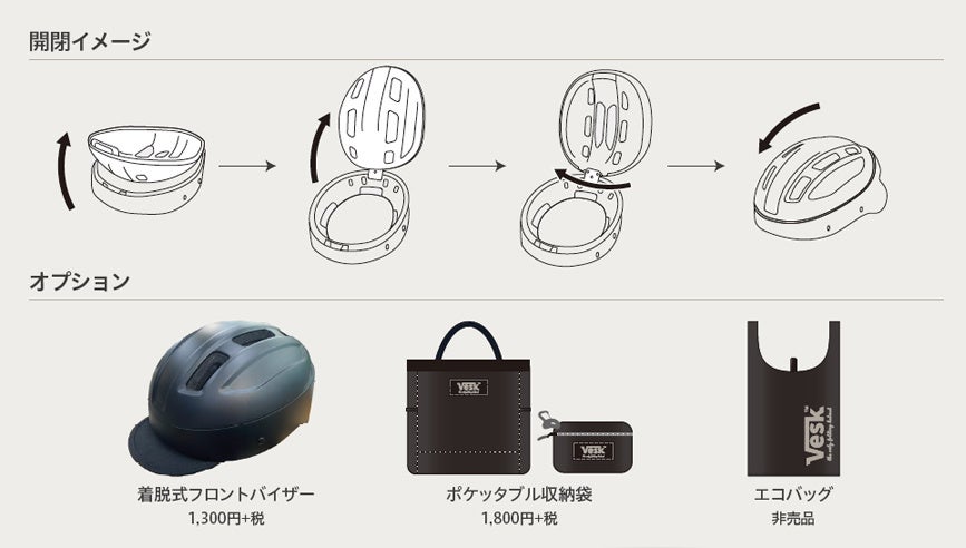 この自転車用折りたたみ式ヘルメットZEROFIT VESK(ゼロフィットベスク)は、グループ会社のヘルメット製造メーカー、東洋物産工業との共同開発。2024年6月12日10時に、応援購⼊サービス「Makuake」にて販売開始いたします。