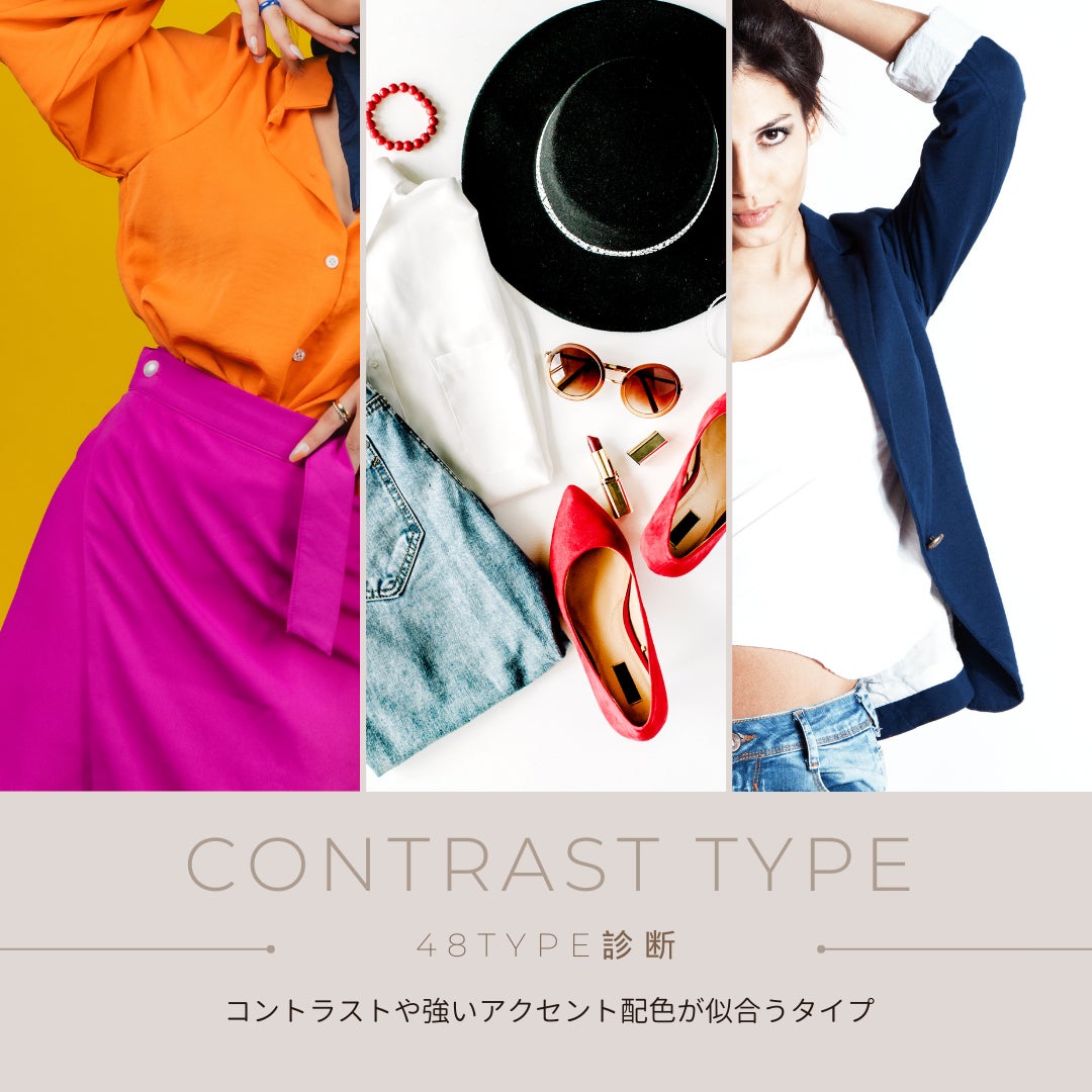 ファッションの配色パターンを[ワントーン配色][コントラスト配色][リズム&ミディアム配色]の3つのパターンに分け、自分の魅力を最も引き出す色と、ファッションコーディネートに役立つ配色をパーソナル診断できる、