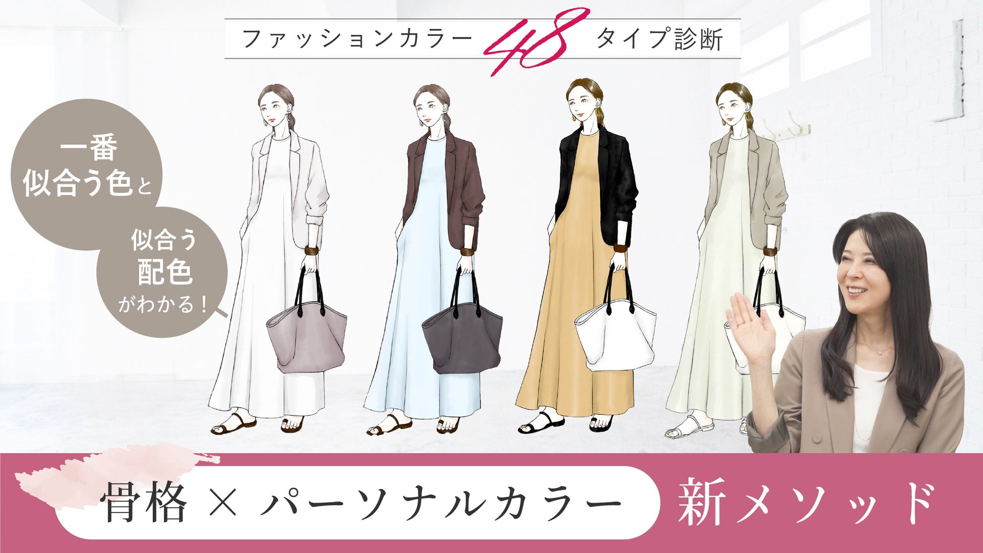 二神弓子監修。パーソナルカラー4シーズンをそれぞれ4トーンに分類したチャームカラー診断と、骨格3タイプによる配色パターンから48通りの診断結果が導き出される全く新しいファッションの新メソッドが誕生。