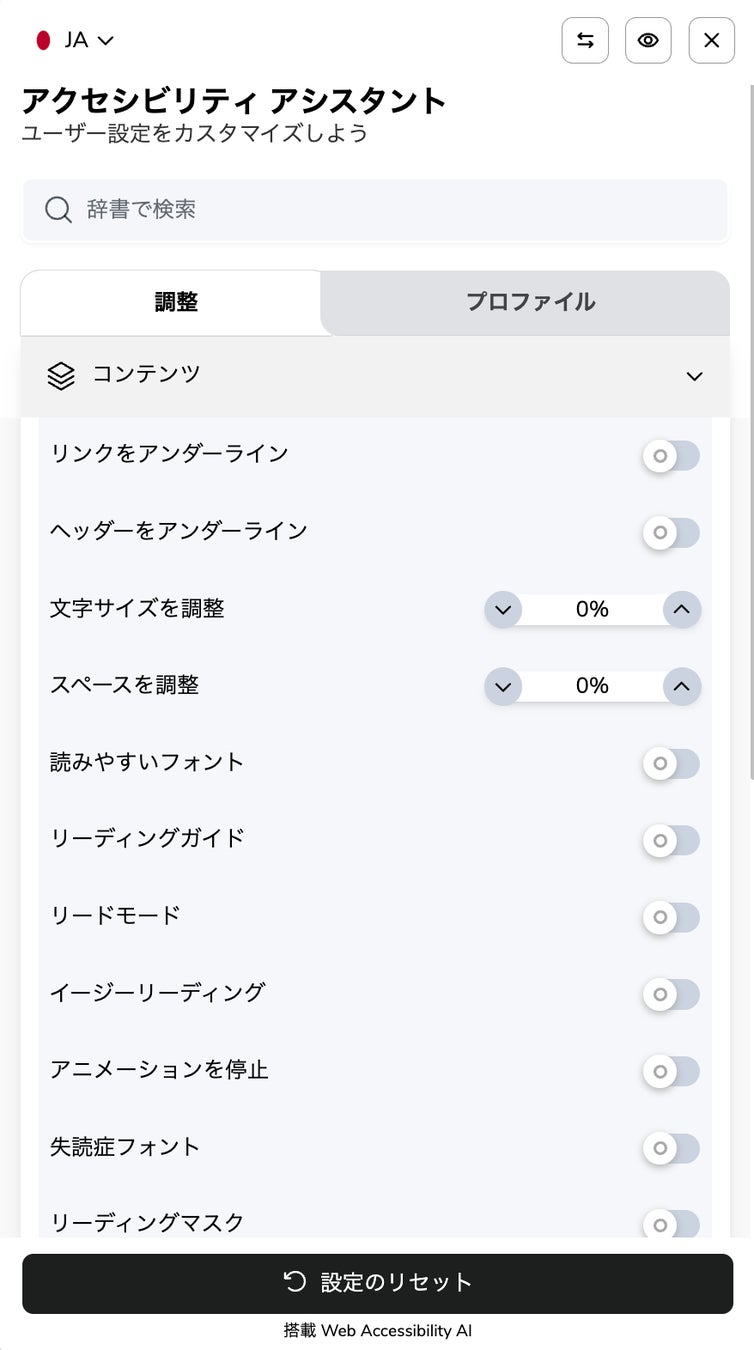 利用者のブラウザや端末に依存することなく、ウェブアクセシビリティに機能をご利用できます。