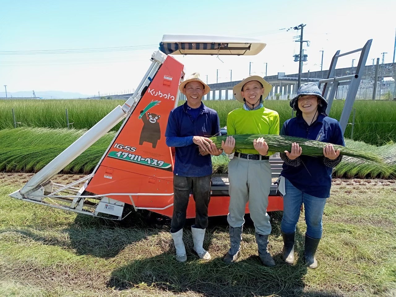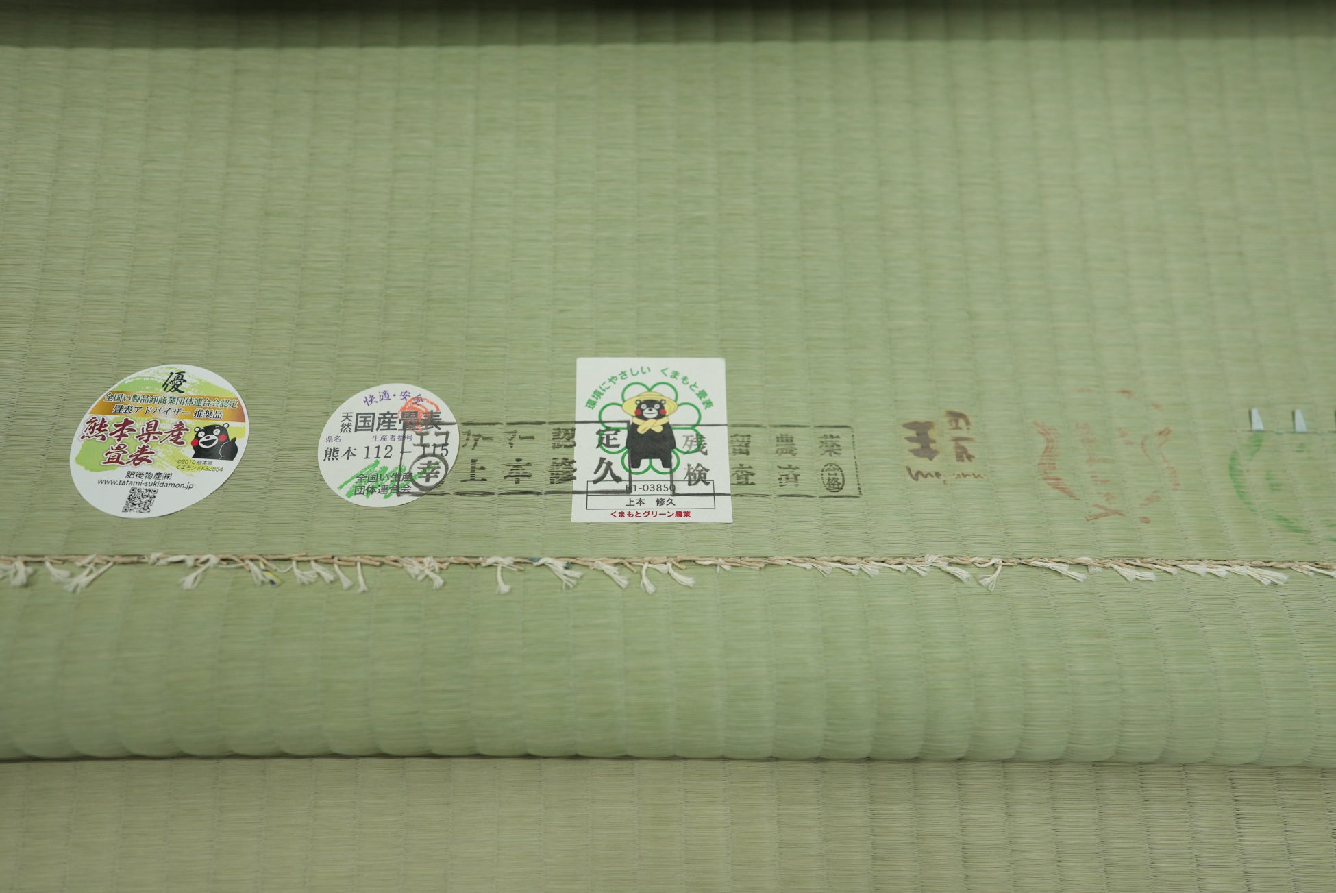 『環~meguru~』は、熊本県八代地区でい草の低農薬・減農薬栽培に取組む上本修久・美香ご夫妻が生み出した、国内最高品質のブランド畳表です。ご夫妻は、い草の低農薬・減農薬栽培に積極的に取り組み、自身の田んぼや畑、そして地球環境に負荷を与えることなく良い環境のもと長きにわたり農業に携わることが、結果的に安心安全で心地よい畳をお客様に届けられるのだと考えました。その畳のあるべき理想の姿を生産過程のすべてで追求して生み出したのが『環~meguru~』です。わたしたち銀虎は、上本ご夫妻の姿勢に共感し、『ベビーベッド畳』に、この『環~meguru~』を採用いたしました。