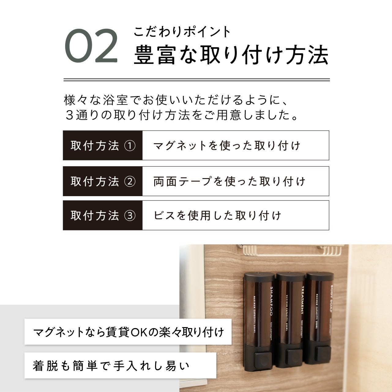 【ホテルライクな暮らしを叶える】3連マグネットソープディスペンサーを発売【デビュー割2月中は20%OFF!】