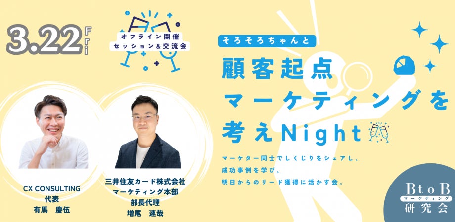 『BtoBマーケティング研究会』を運営する株式会社b-growth(東京都港区、代表取締役CEO:菱沼匡、以下b-growth)は)三井住友カード株式会社の増尾氏とCX CONSULTINGの有馬氏をお迎えし、BtoBマーケティングの顧客起点・目線のマーケティングに関するしくじり話を共通テーマに、成功事例・失敗事例をシェアする『ここでしか聞けないBtoBマーケしくじり話』イベントを2024年3月22日に開催いたします。