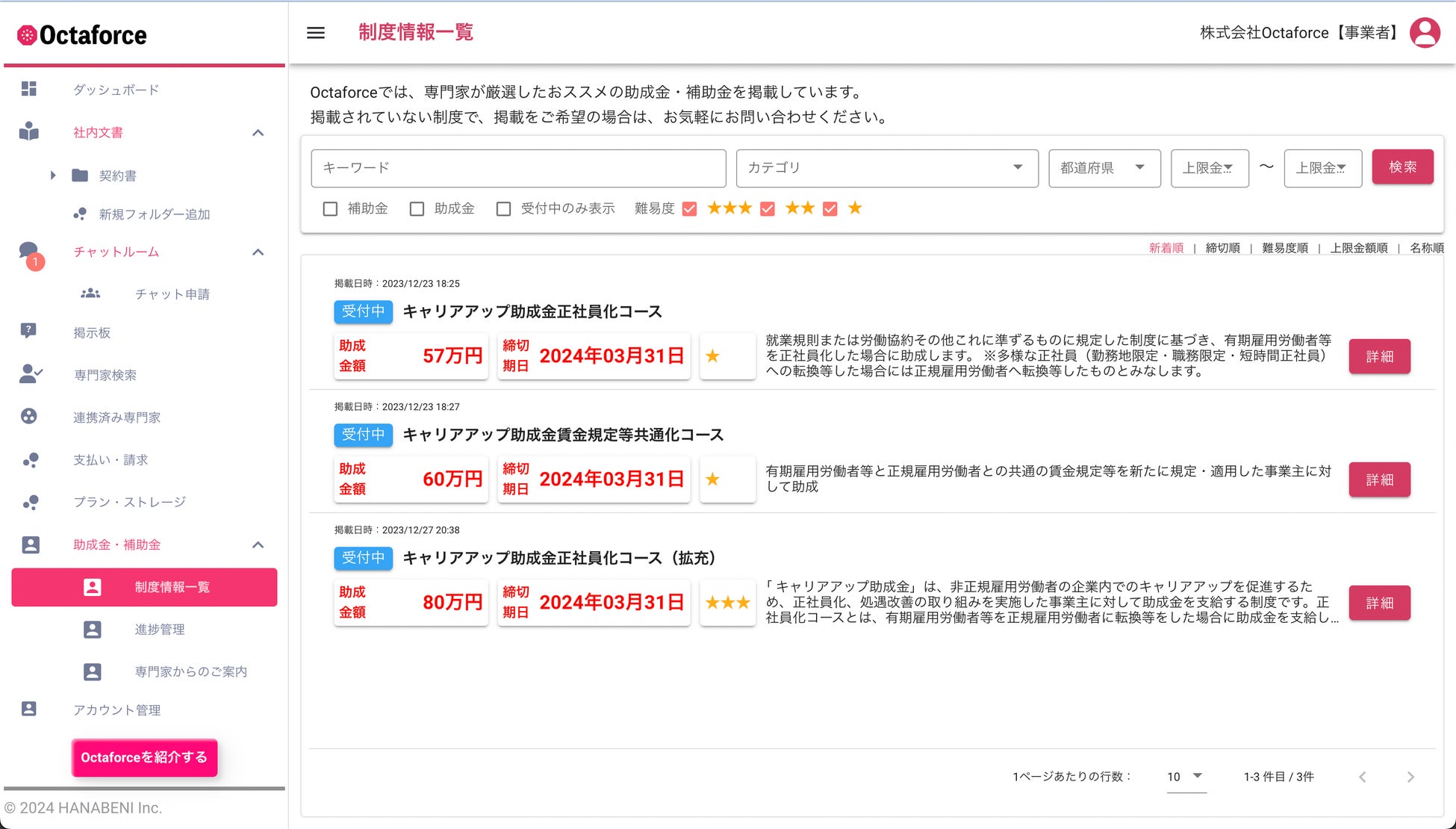 株式会社HANABENI(東京都渋谷区恵比寿 代表取締役:財 治喜)は、年間4000件を超える助成金申請の豊富な知見に基づき開発された新サービス「Octaforce(オクタフォース)」を、事業者と専門家のコミュニケーションと業務進行を促進し、助成金および補助金の申請プロセスを効率化するための先進的なプラットフォームとして令和6年2月7日(水)より提供開始することをお知らせいたします。