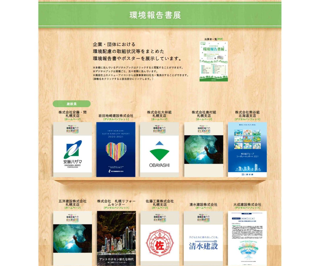 令和5年度の「環境報告書展」は、2024年2月1日から札幌商工会議所の札幌ゼロカーボン推進ネットワークホームページを活用したオンラインでの開催となります。