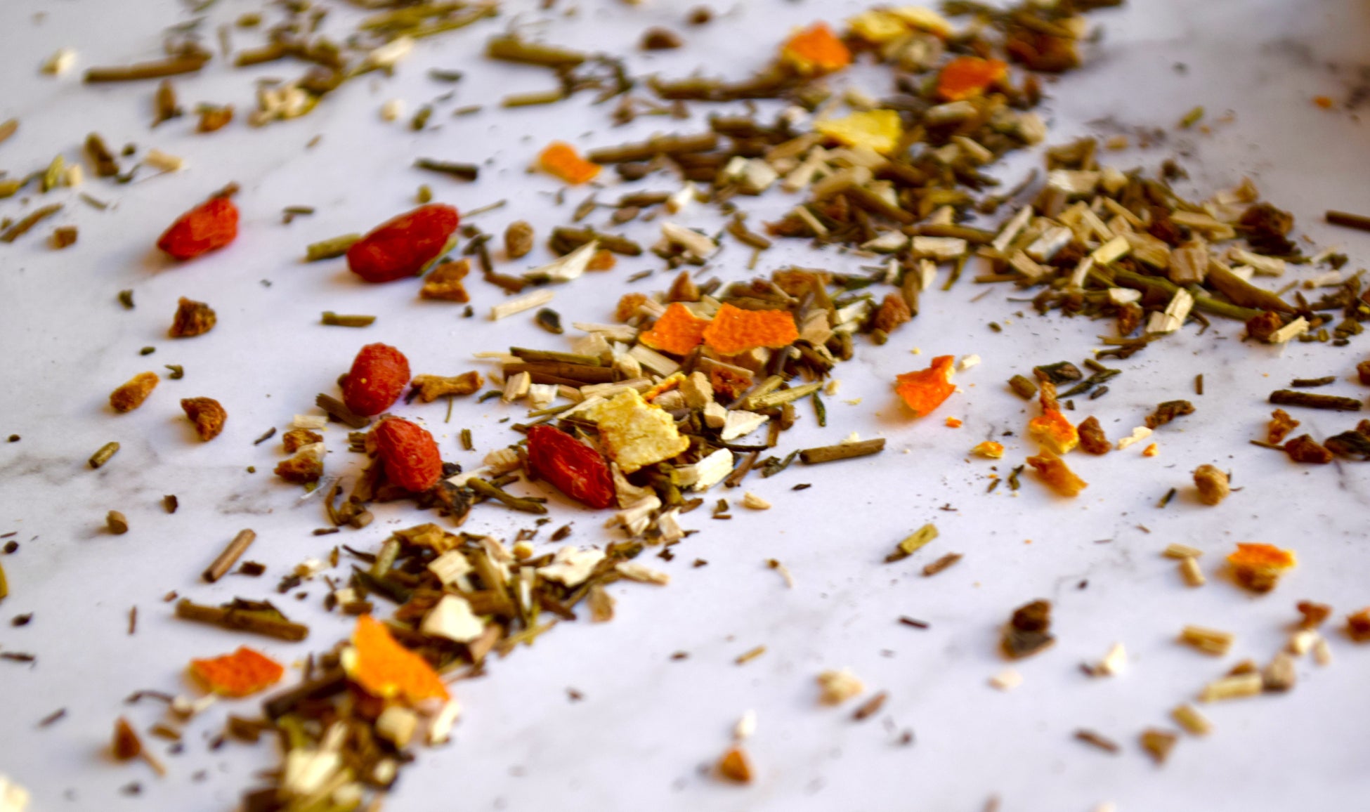 原材料名:茶(埼玉県産)オレンジ果皮 クロモジ ゴジベリー みかん果皮 金箔