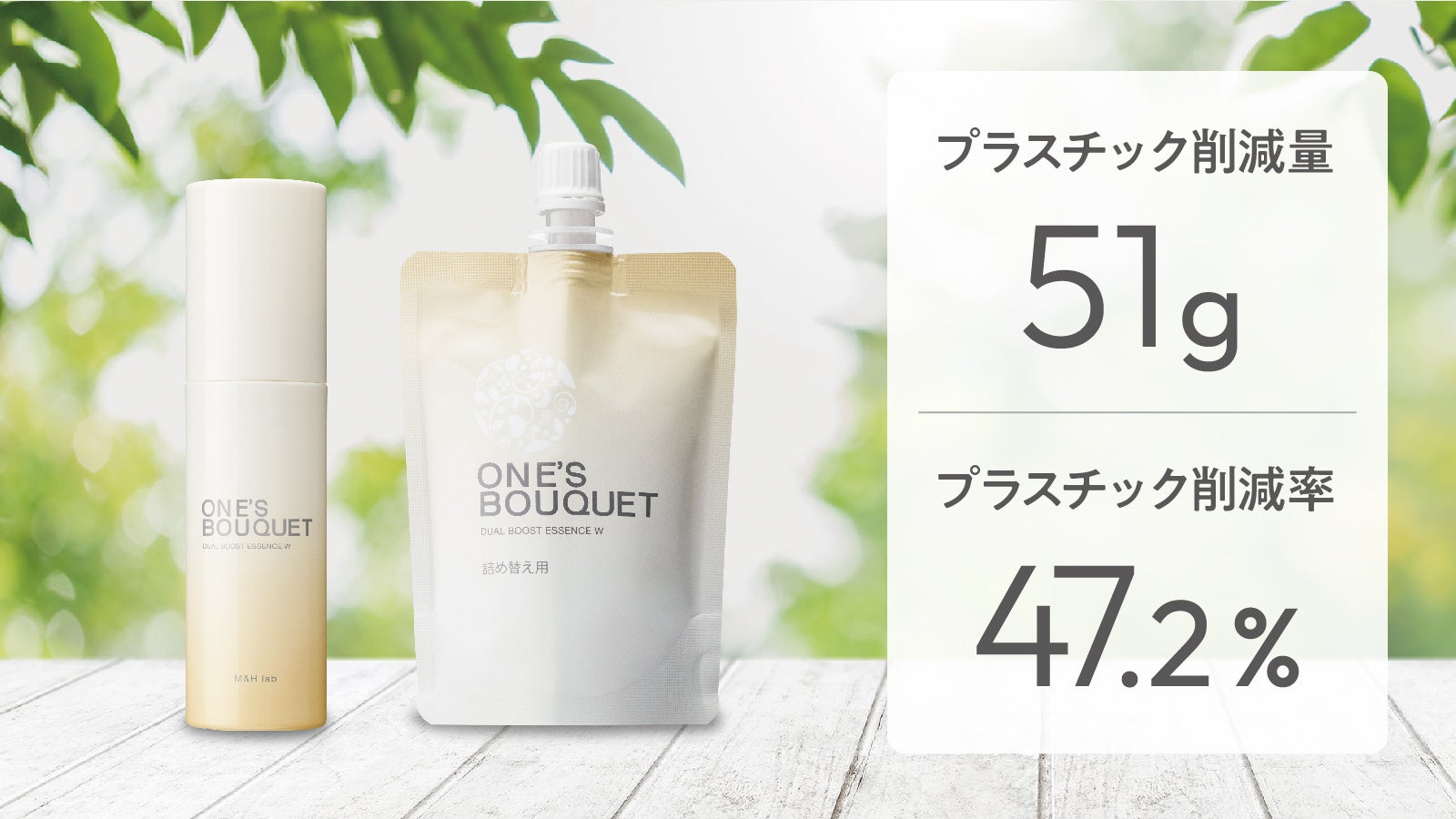 「ONES’ BOUQUET デュアル ブースト エッセンス W」は環境のことを考え、初回は本体容器とリフィルでお届けし、次回以降はリフィルのみのお届けとなります。