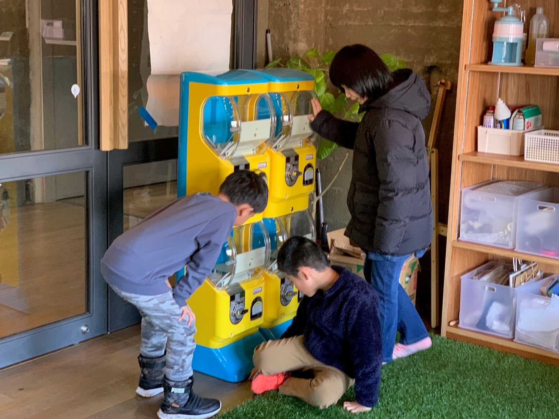 子どもたちとQ1の廊下にガチャガチャを設置します。 |