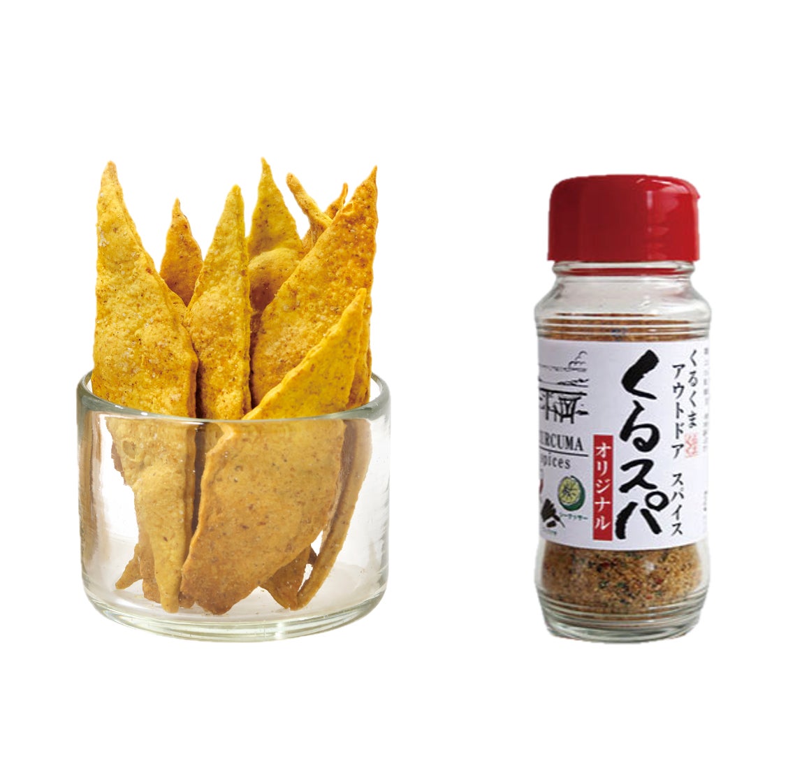 このたび、南城市で「カフェくるくま」を運営する農業生産法人株式会社仲善とのコラボレーションで、仲善が生産するウコン(沖縄の言葉で「うっちん」)と調味料「アウトドアスパイス・くるスパ (オリジナル)」を使ったコラボ商品を開発し、今回のイベント限定で販売いたします(数量限定)。