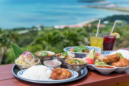 2001年にオープンし、今年で23年目となる沖縄・南城市の絶景ロケーションに位置するレストラン。本場タイ出身のシェフがアジアンテイストを再現し、大自然を肌で感じながら、自社製造のウコンを使ったカレーや、バタフライピーを使ったタイ料理「カオ・オップ アンチャン」などを楽しめます。現在では県外、国外から年間10万人ほどの観光客が訪れるレストランになっています。