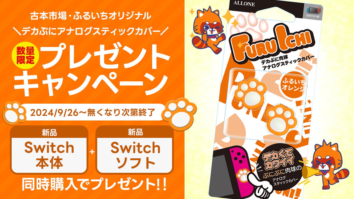 新品Nintendo Switch本体+新品Nintendo Switchソフト同時購入で、古本市場/ふるいちオリジナルカラー「Nintendo Switch用デカぷに アナログスティックカバー にくきゅう」をプレゼント