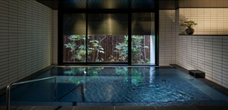 たっぷりのお湯と景色。大浴場のあるホテルでは、美しい坪庭や夜景を見ながらゆっくりと足を伸ばして温まることで、旅の疲れが癒されます。抜群の解放感から得られるくつろぎの時間を、心ゆくまでお楽しみいただけます。