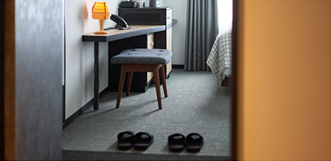 靴を脱ぐからこそ得られる“くつろぎ”。リソルホテルは全室シューズオフスタイル。外から中への空間の移動と、靴を脱ぐという時間の移動から生まれる「間」が、心まで落ち着かせてくれます。
