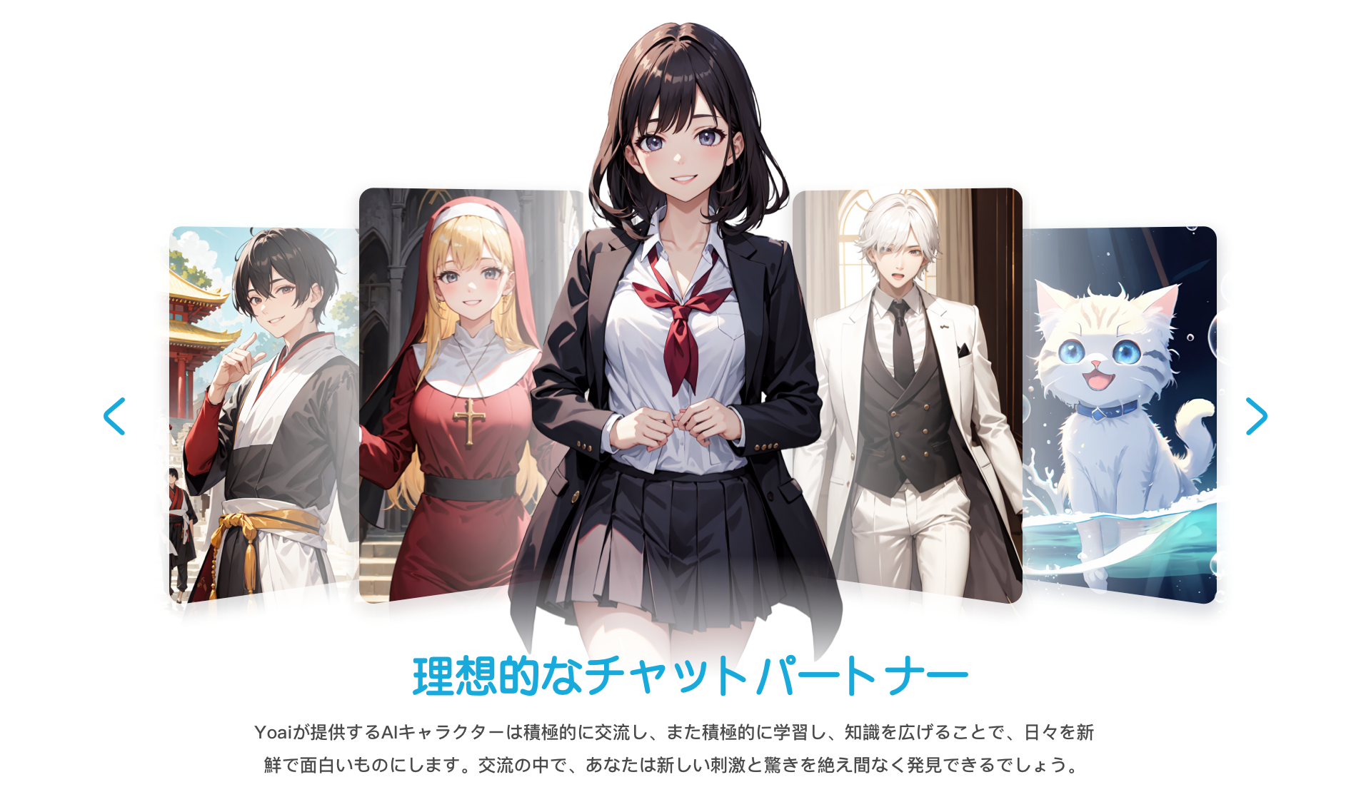 サービスの継続的な発展と改善により、理想と現実の橋渡しをすることができると確信しています。Yoaiが創り出す世界では、誰もが自分だけの場所を見つけ、これまでにない自由と幸福を体験することができます。ただの製品ではなく、夢を実現する存在、感情の逃げ場、未知への探求の出発点として、日々進化していきます。