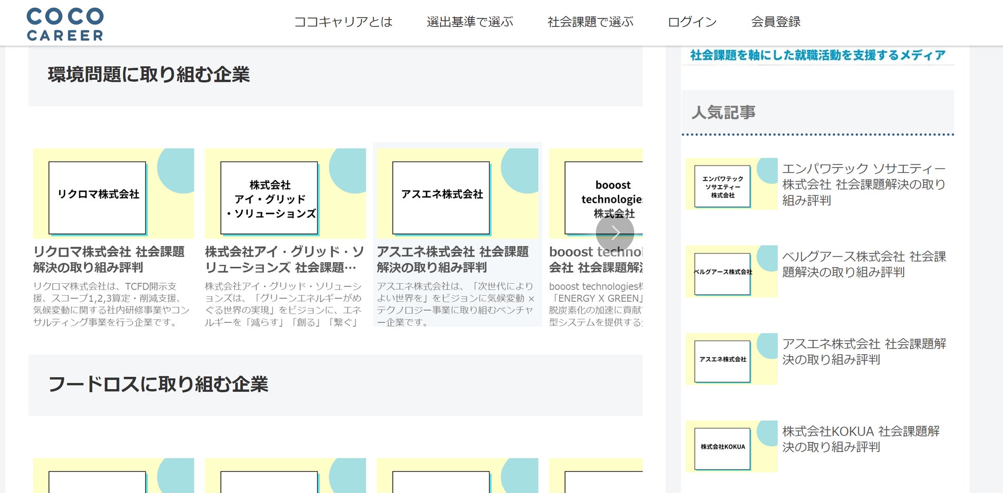 ココキャリアでは、可能な限りすべての社会課題に取り組む企業について、厳選して掲載することを目指します。