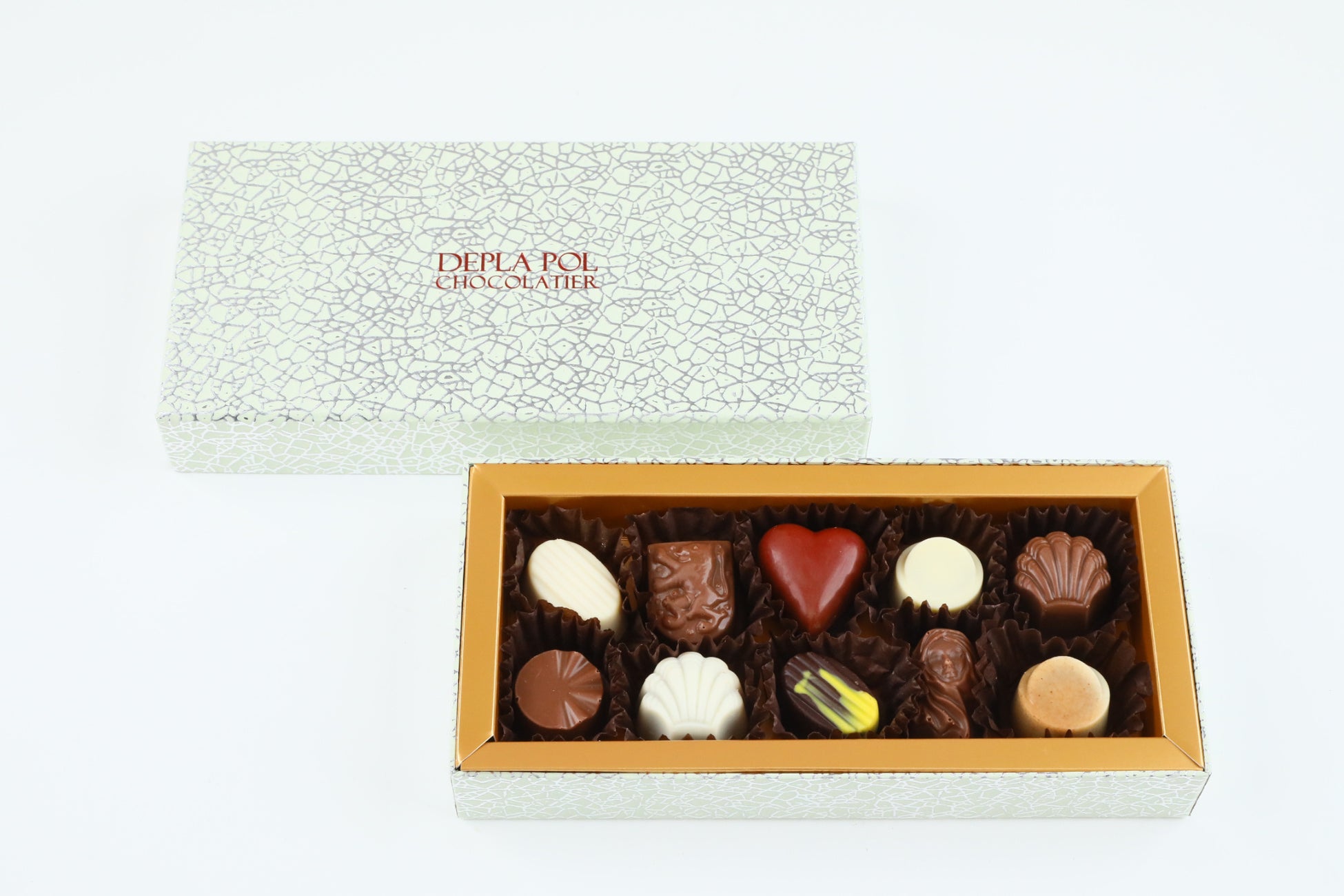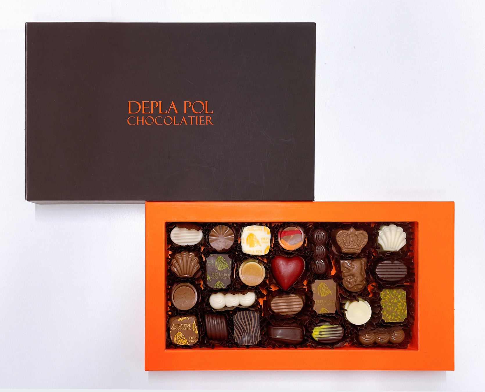 新作9種を含むコンプリートボックス。このアソートにしかないアルコール使用のコアントローなど、デプラポールショコラティエを満喫できるアソートです。
