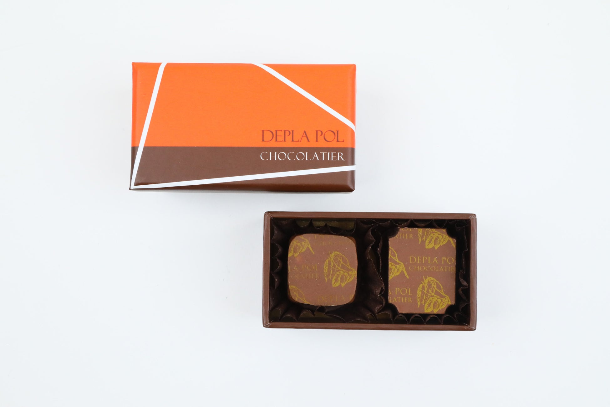 ブランドを代表するサクサククレープのヘーゼルナッツプラリネ&甘みと塩味のバランスが絶妙な自家製の塩キャラメル。デプラといったらまずこれ!の2粒です。