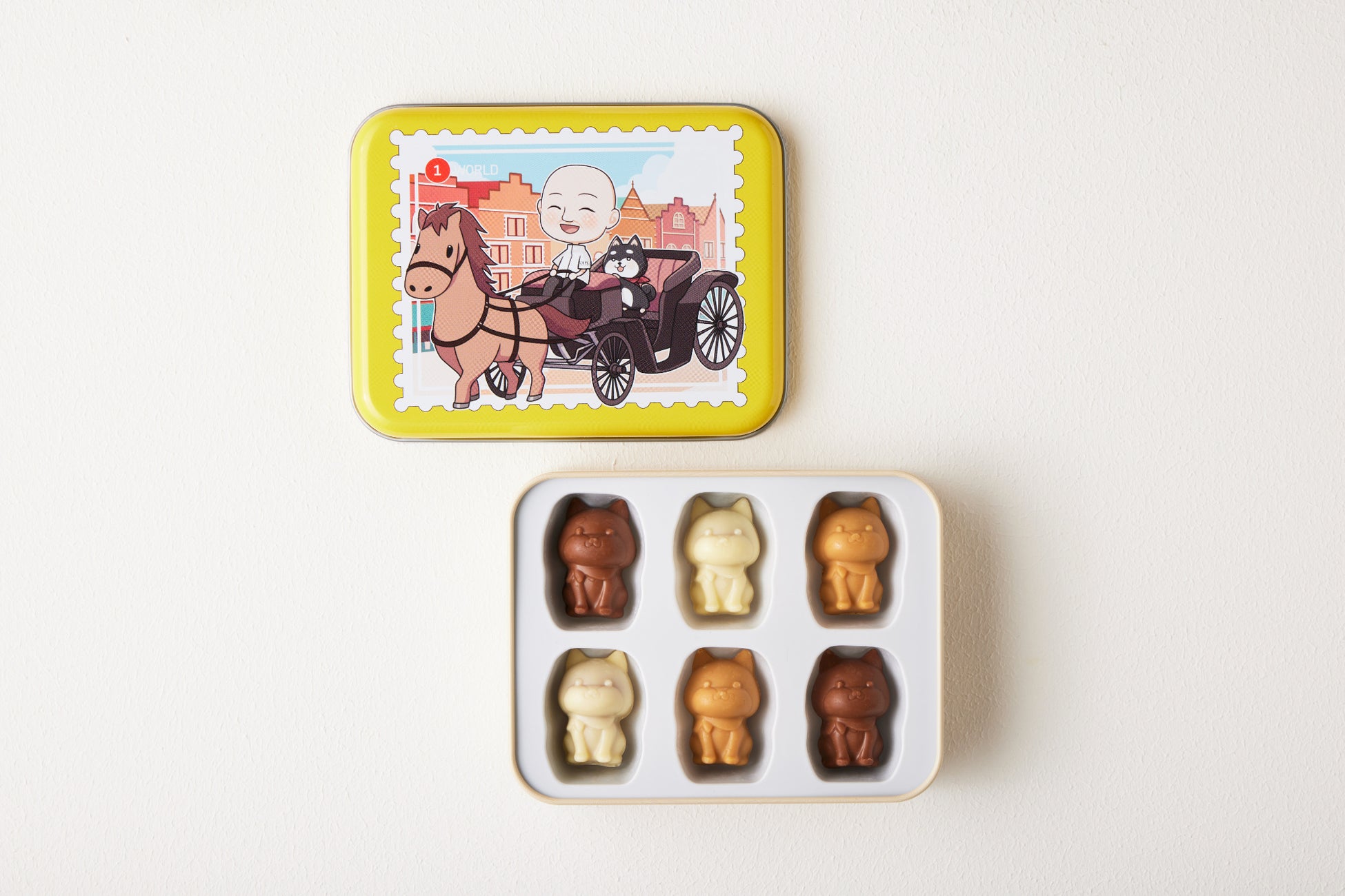 黒豆柴犬たんたんのモールドは当店だけのオリジナル!ミルク、ブランシュ、ブロンド3種が楽しめるアソートです。