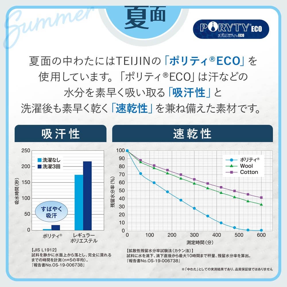ほどよいフィット感のある寝心地が味わえるキルティングカバー(厚み2cm)には「吸汗速乾わた」が使われている夏面、「吸湿発熱わた」が使用されている冬面があるので、1年中快適に眠れます。