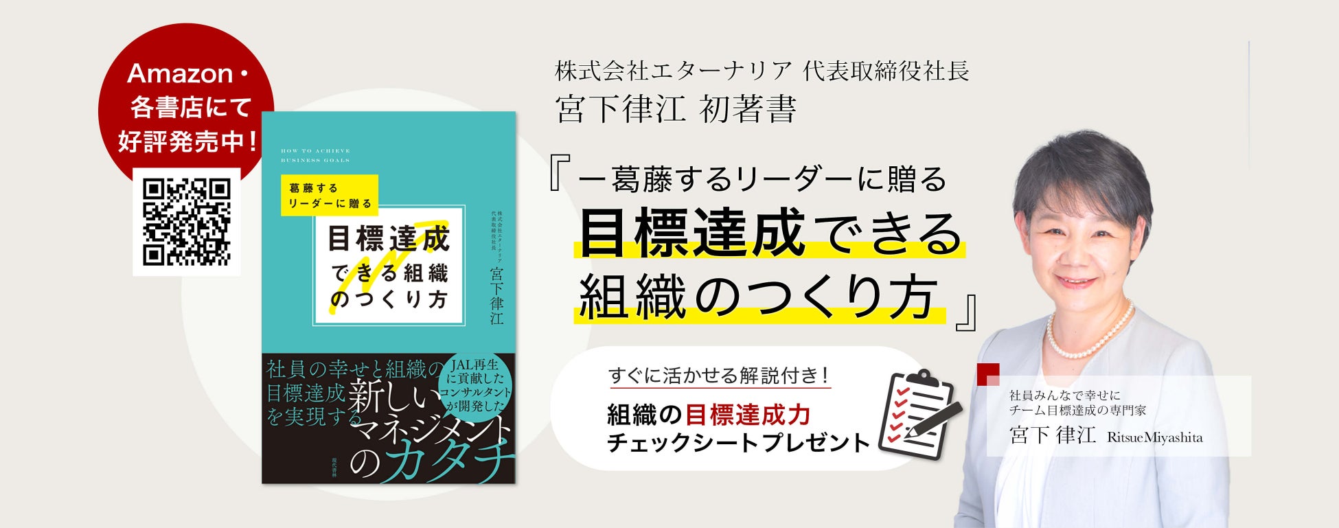 企業の業績向上や人財育成のコンサルを行う株式会社エターナリア(東京都・港区)代表 宮下律江は、現代書林 より2024年1月28日に書籍『目標達成できる組織のつくり方』(以下、本書)を刊行しました。本書は、会社からチームに与えられたノルマを達成できずプレッシャーを感じているリーダーやその部下の育成に悩む経営者の皆様へ、4つの大切な要素から実践的に成果が得られるチームの目標達成のコツを伝えるビジネス本です