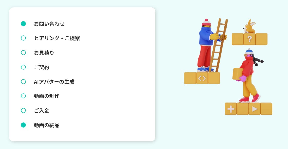 ご契約後、数分程度の撮影を行い、その撮影素材をもとにAIアバターの生成を行います。