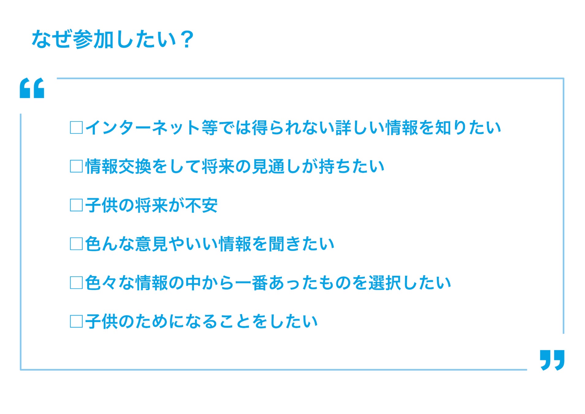親御様はお子様のことを第一に考え正しい情報を求めています。