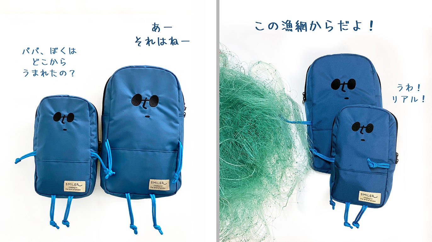 くすっと笑えるユニークなバッグの初クラウドファンディングが4月10日からスタート!廃漁網のリサイクル生地使用で海に恩返しもできます