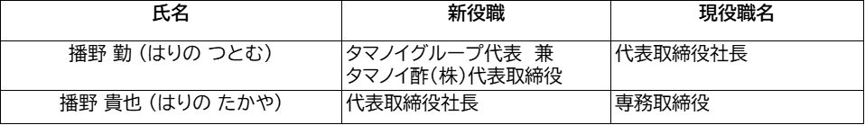 また、これまで33年に渡って代表取締役社長を務めた播野 勤はタマノイグループ代表 兼 タマノイ酢(株)代表取締役に就任いたします。