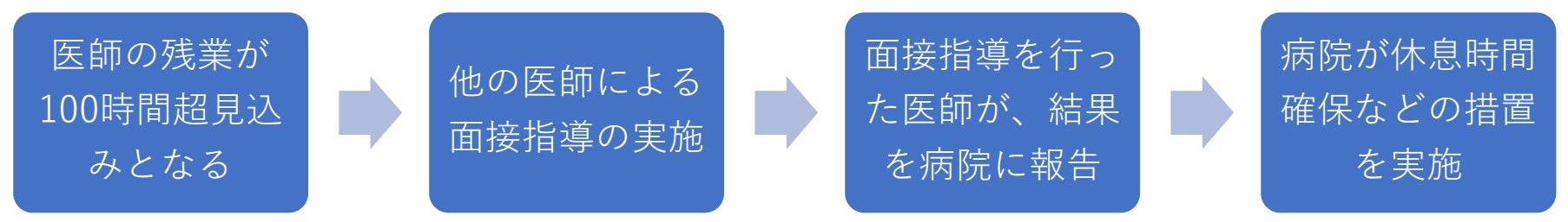 さらに、時間外・休日労働が月100時間以上となることが見込まれる医師に、健康状態を別の医師がチェックする「面接指導」を受けさせることが、病院に義務付けられました。必要な面接指導を実施しなかった場合、懲役6カ月以下などの罰則がある医療法違反となります。