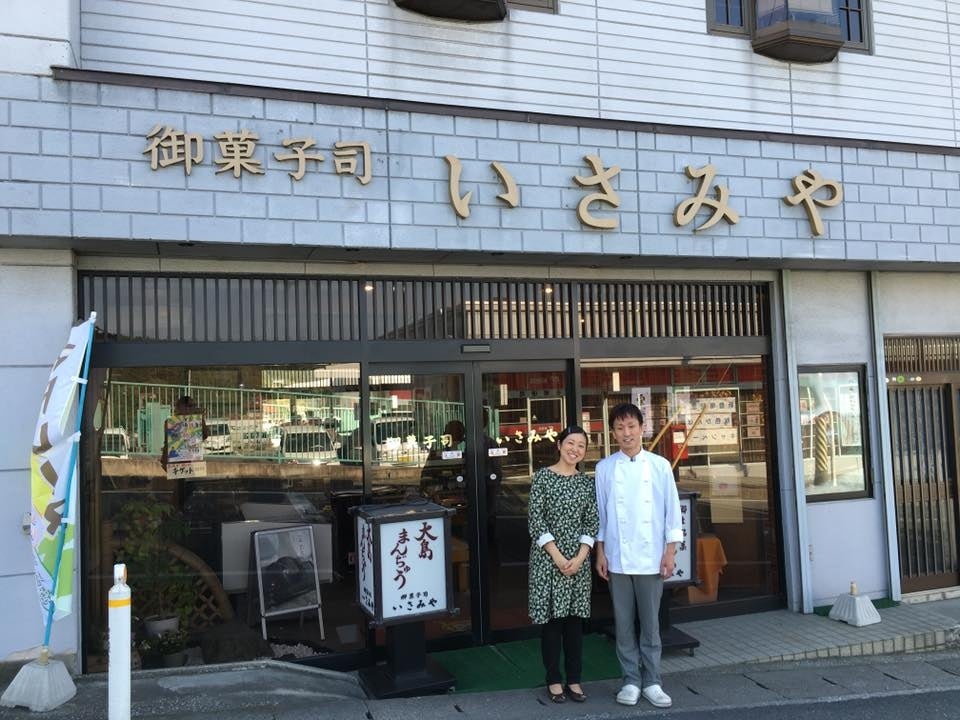 「御菓子司いさみや」は昭和22年の創業から気仙沼本吉の地で変わらずお菓子を作り続けています。看板商品の「名代大島まんぢゅう」は気仙沼の名物まんぢゅうとして、地域の皆さんに愛されてきました。ちなみに気仙沼ではお家でお茶を飲む時間を「お茶っこ」言い、他所に訪問すると必ず「お茶っこ飲んでいがい」(お茶飲を飲んでくださいの意味)が合言葉のように使われています。「名代大島まんぢゅう」は気仙沼のそんな「お茶っこ」の添え物として重宝されてきました。またそのような伝統は守りつつも、気仙沼の観光キャラクター「海の子ホヤぼーや」をかたどった「ホヤぼーやモナカ」や気仙沼の天然塩を使った「塩あんプリン」等、その時代に合わせ地域の宝を活かしたお菓子を親子三代で産み出していきました。